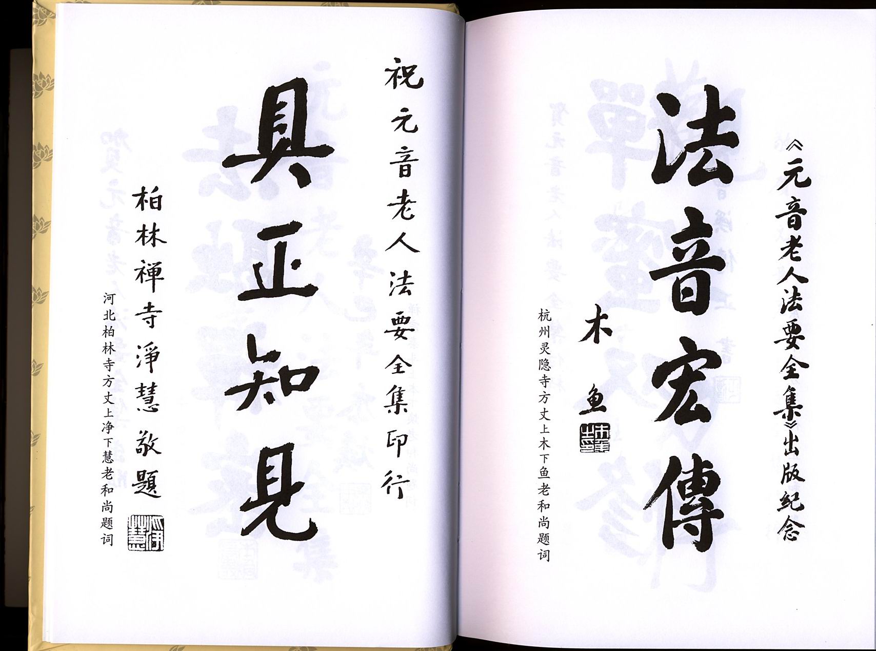 杭州灵隐寺方丈木鱼老和尚为元音老人著作题词